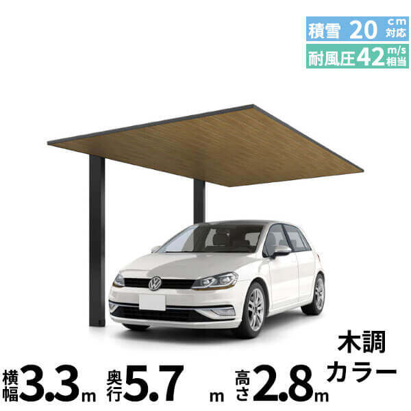 【商品のみ】カーポートSC 1台用 基本棟 H28柱 33-57型 LIXIL リクシル 木調色
