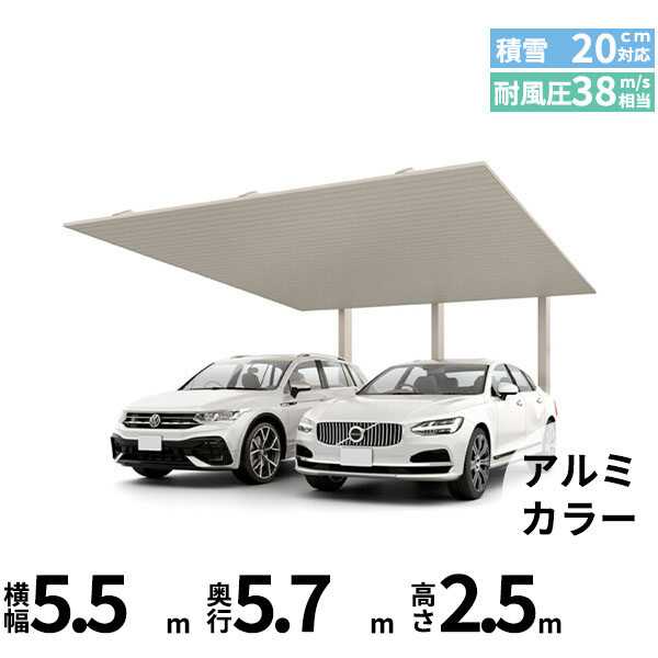 【商品のみ】カーポートSC 後方支持 2台用 基本棟 標準柱(H25) 57-55型 LIXIL リクシル アルミ形材色