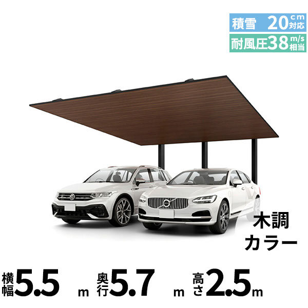 【商品のみ】カーポートSC 後方支持 2台用 基本棟 標準柱(H25) 57-55型 LIXIL リクシル 木調色