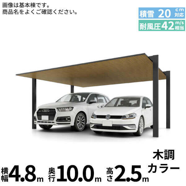 【商品のみ】カーポートSC 2台用 縦2連棟 ロング柱(H25) 48-50型 LIXIL リクシル 木調色