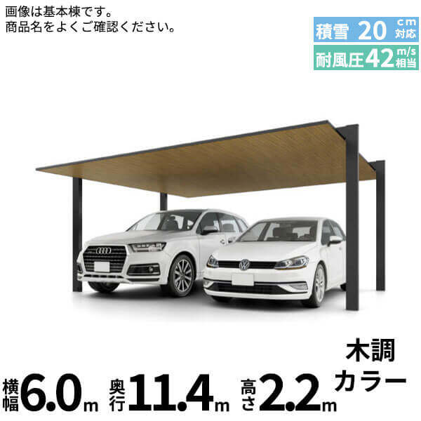 【商品のみ】カーポートSC 2台用 縦2連棟 標準柱(H22) 60-57型 LIXIL リクシル 木調色