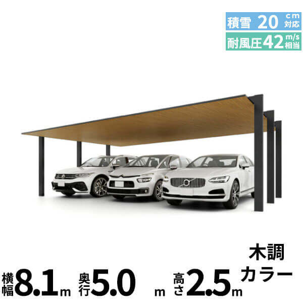 【商品のみ】カーポートSC 3台用 基本棟 標準柱(H22) 81-50型 LIXIL リクシル 木調色