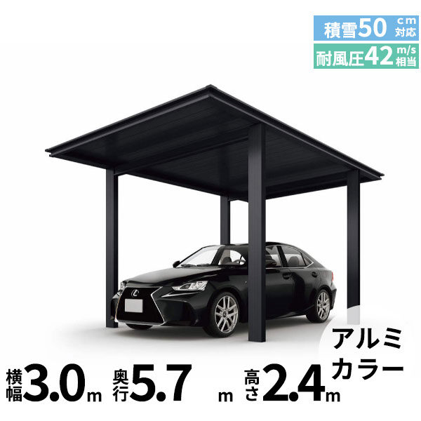 【商品のみ】カーポート 1台用 YKKAP YKK ルシアスカーポート 1500タイプ 57-30 H24 単体納まり アルミ屋根 アルミカラー