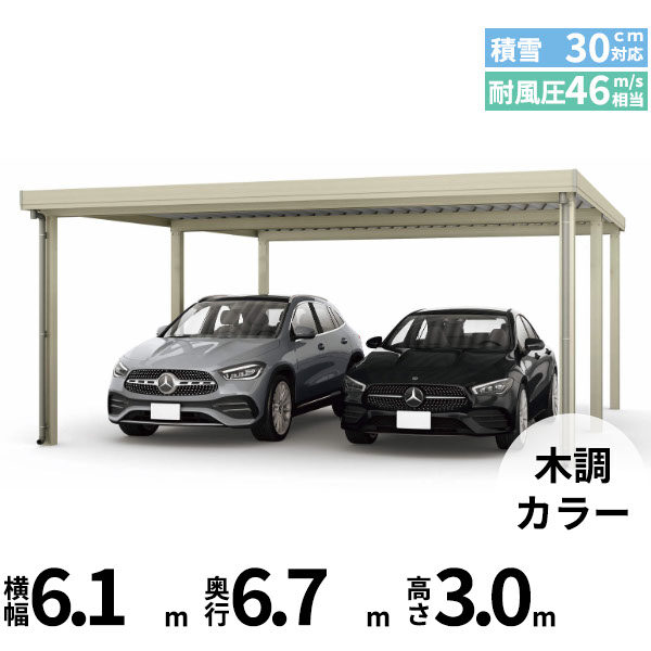 【商品のみ】カーポート 2台用 YKK YKKAP ジーポート Pro 900タイプ 横材なし 明かり取りなし 奥行延長柱6本 J55・12-60 H30 木調色