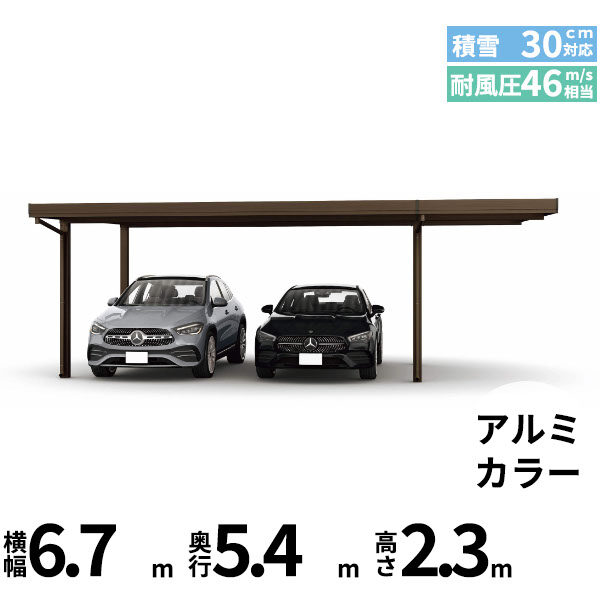 【商品のみ】カーポート 2台用 YKK YKKAP ジーポート Pro 900タイプ 横材なし 明かり取りなし 奥行(2)連結柱8本 J55・60-36 H30 木調色