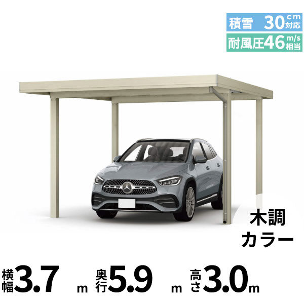 【商品のみ】カーポート 1台用 YKK YKKAP ジーポート Pro 900タイプ 横材なし 明かり取りなし 単体柱4本 60-36 H30 木調色