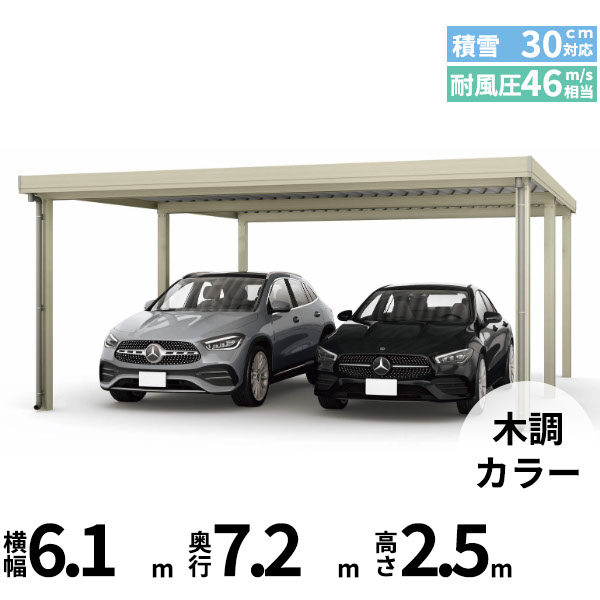 【商品のみ】カーポート 3台用 YKK YKKAP ジーポート Pro 900タイプ 横材なし 明かり取りなし 間口(2)連結柱6本 M60-60・30 H30 木調色