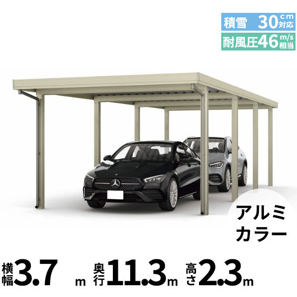 【商品のみ】カーポート 2台用 YKK YKKAP ジーポート Pro 900タイプ 横材なし 明かり取りなし 間口延長柱4本 E60-60・18 H30 アルミ色