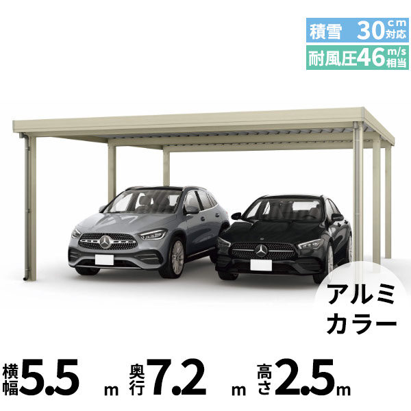 【商品のみ】カーポート 2台用 YKK YKKAP ジーポート Pro 900タイプ 横材なし 明かり取りなし 奥行(2)連結柱8本 J55・55-36 H30 アルミ色