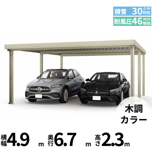 【商品のみ】カーポート 2台用 YKK YKKAP ジーポート Pro 900タイプ 横材なし 明かり取りなし 奥行延長柱6本 J60・12-55 H30 木調色