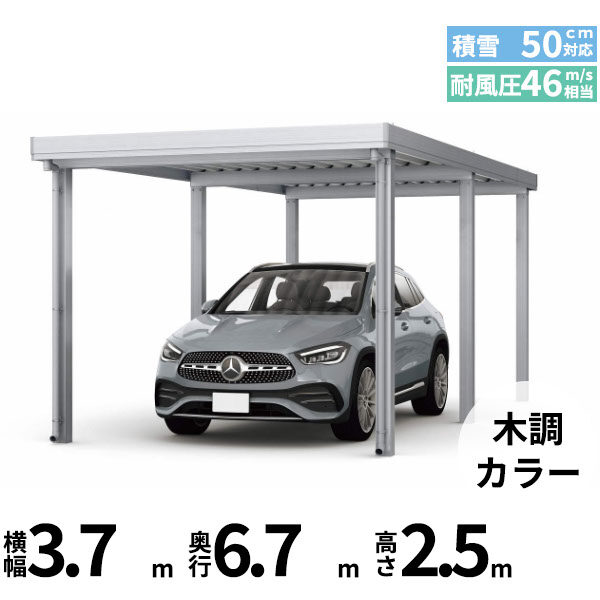 【商品のみ】カーポート 2台用 YKK YKKAP ジーポート Pro 1500タイプ 横材なし 明かり取りなし 単体柱4本 60-60 H24 木調色