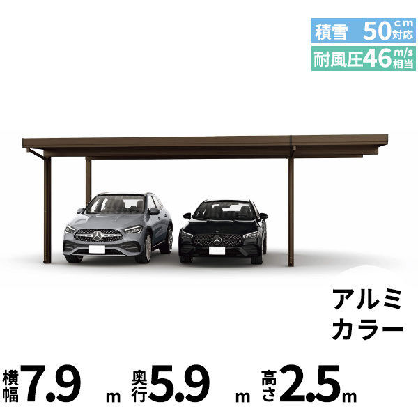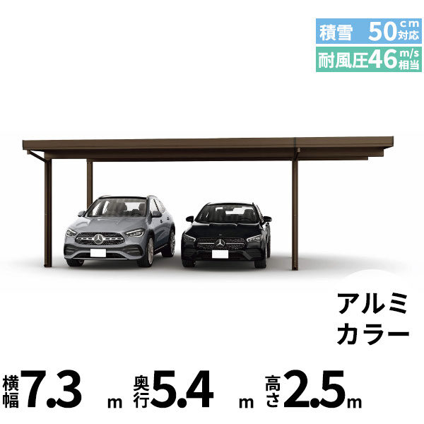 【商品のみ】カーポート 2台用 YKK YKKAP ジーポート Pro 1500タイプ 横材なし 明かり取りなし 単体柱4本 55-55 H25(凍上柱) アルミ色