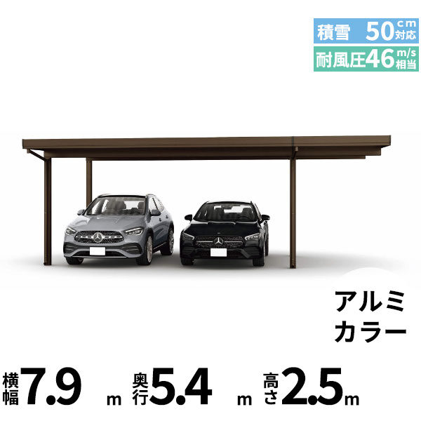 【商品のみ】カーポート 2台用 YKK YKKAP ジーポート Pro 1500タイプ 横材なし 明かり取りなし 奥行(2)連結柱8本 J60・60-30 H24 アルミ色