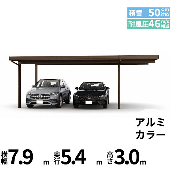 【商品のみ】カーポート 2台用 YKK YKKAP ジーポート Pro 1500タイプ 横材なし 明かり取りなし 単体柱4本 55-60 H30 アルミ色