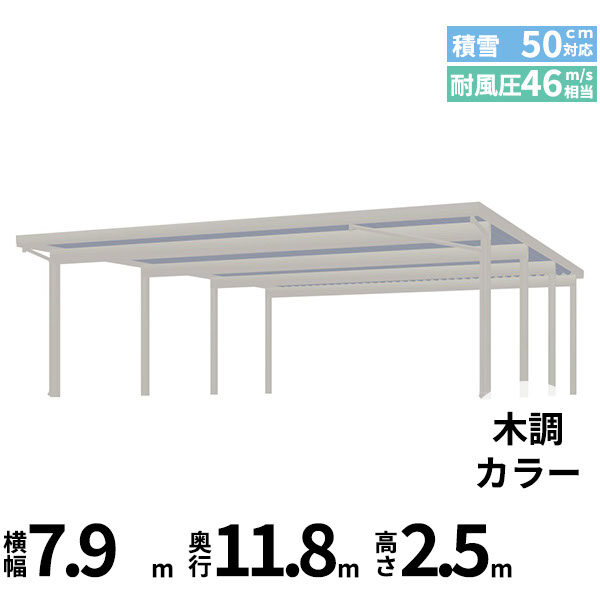 【商品のみ】カーポート 6台用 YKK YKKAP ジーポート Pro 1500タイプ 横材なし 明かり取りなし 奥行(2)連結柱8本 J55・55-80 H25(凍上柱) 木調色