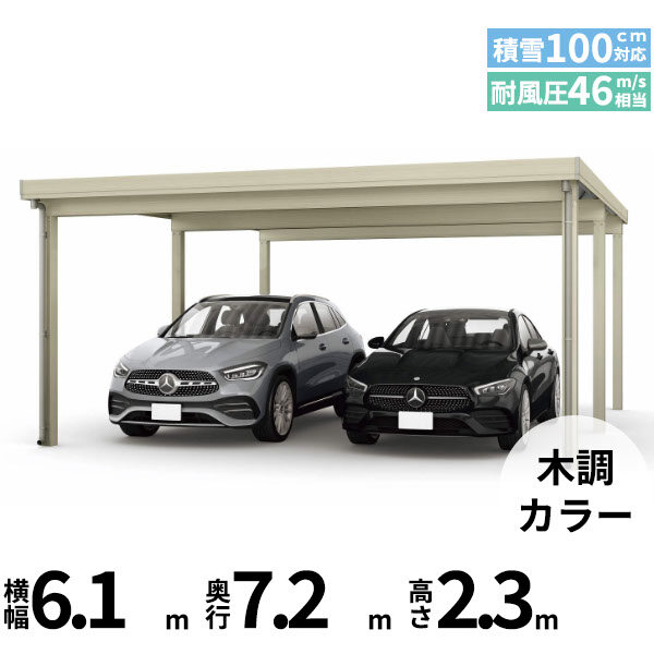 【商品のみ】カーポート 2台用 YKK YKKAP ジーポート Pro 3000タイプ 横材なし 明かり取りなし 間口延長柱6本 E60-60・18 H24 木調色