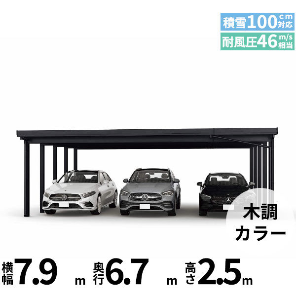 【商品のみ】カーポート 3台用 YKK YKKAP ジーポート Pro 3000タイプ 横材なし 明かり取りなし 間口延長柱8本 E55-80・18 H25(凍上柱) 木調色
