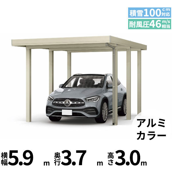 【商品のみ】カーポート 1台用 YKK YKKAP ジーポート Pro 3000タイプ 横材なし 明かり取りなし 単体柱6本 60-36 H30 アルミ色