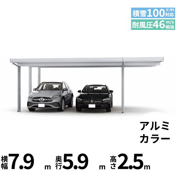 【商品のみ】カーポート 2台用 YKK YKKAP ジーポート Pro 3000タイプ 横材なし 明かり取りなし 間口延長柱6本 E60-60・18 H25(凍上柱) アルミ色