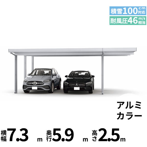 【商品のみ】カーポート 2台用 YKK YKKAP ジーポート Pro 3000タイプ 横材なし 明かり取りなし 単体柱6本 60-55 H25 アルミ色