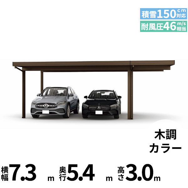 【商品のみ】カーポート 2台用 YKK YKKAP ジーポート Pro 4500タイプ 横材なし 明かり取りなし 単体柱6本 60-60 H25 木調色