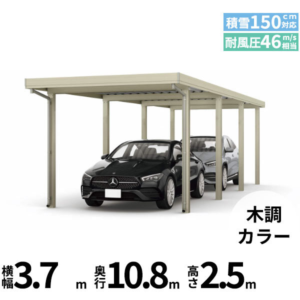 【商品のみ】カーポート 2台用 YKK YKKAP ジーポート Pro 4500タイプ 横材なし 明かり取りなし 奥行(2)連結柱12本 J60・60-36 H25(凍上柱) 木調色