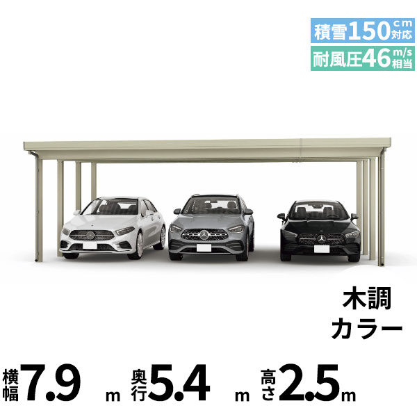 【商品のみ】カーポート 3台用 YKK YKKAP ジーポート Pro 4500タイプ 横材なし 明かり取りなし 単体柱8本 55-80 H25(凍上柱) 木調色