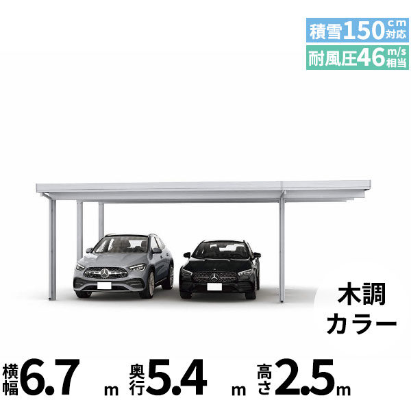 【商品のみ】カーポート 2台用 YKK YKKAP ジーポート Pro 4500タイプ 横材なし 明かり取りなし 単体柱6本 55-48 H25 木調色