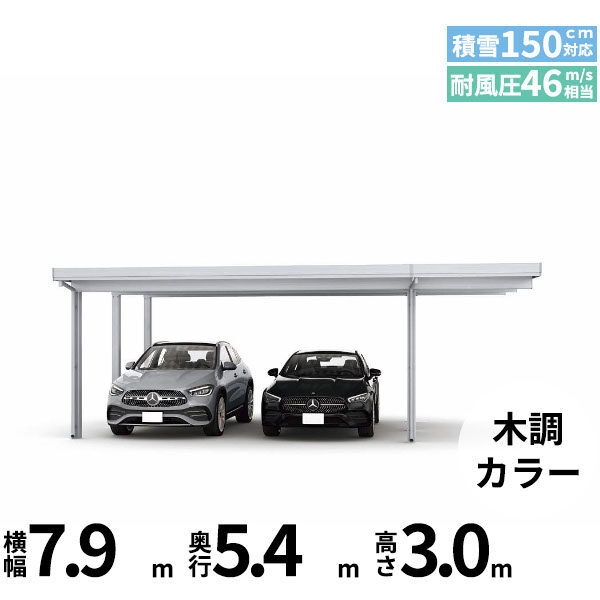 【商品のみ】カーポート 2台用 YKK YKKAP ジーポート Pro 4500タイプ 横材なし 明かり取りなし 間口延長柱4本(梁2列) E55-60・18 H24 木調色