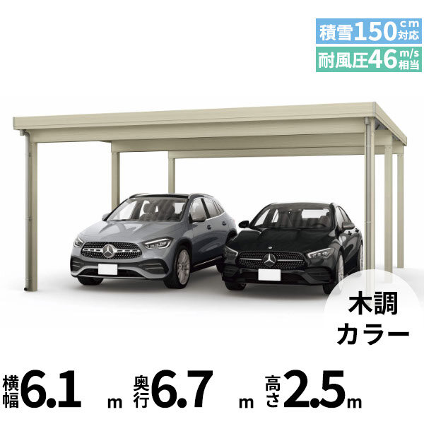 【商品のみ】カーポート 2台用 YKK YKKAP ジーポート Pro 4500タイプ 横材なし 明かり取りなし 単体柱6本 60-60 H25(凍上柱) 木調色