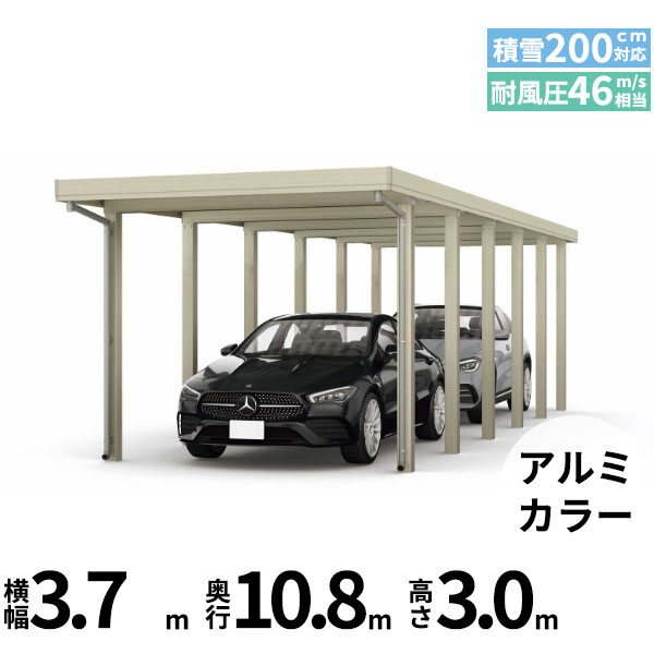 【商品のみ】カーポート 2台用 YKK YKKAP ジーポート Pro 6000タイプ 横材なし 明かり取りなし 奥行(2)連結柱12本 J55・55-36 H30 アルミ色