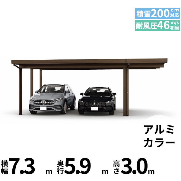 【商品のみ】カーポート 2台用 YKK YKKAP ジーポート Pro 6000タイプ 横材なし 明かり取りなし 単体柱6本 60-55 H30 アルミ色