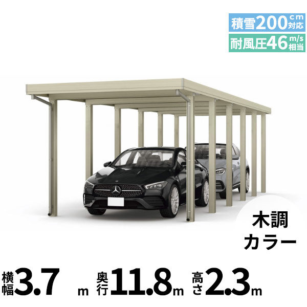 【商品のみ】カーポート 2台用 YKK YKKAP ジーポート Pro 6000タイプ 横材なし 明かり取りなし 奥行(2)連結柱12本 J60・60-36 H24 木調色