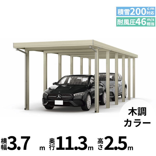 【商品のみ】カーポート 2台用 YKK YKKAP ジーポート Pro 6000タイプ 横材なし 明かり取りなし 奥行(2)連結柱12本 J55・55-36 H30 木調色