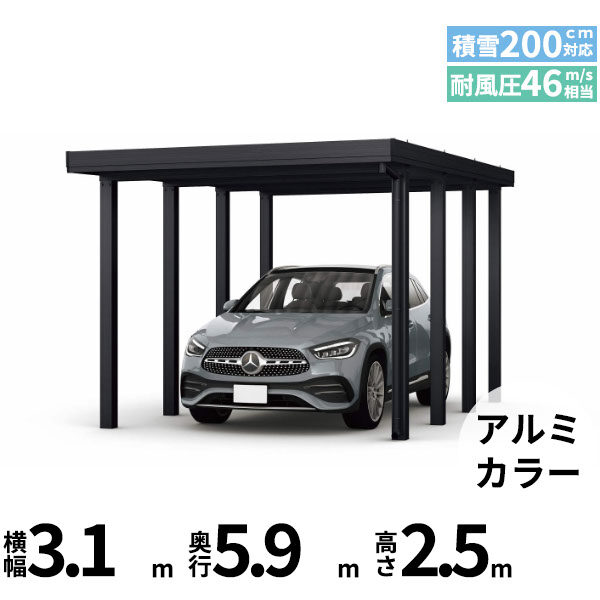 【商品のみ】カーポート 1台用 YKK YKKAP ジーポート Pro 6000タイプ 横材なし 明かり取りなし 単体柱6本 60-30 H25 アルミ色
