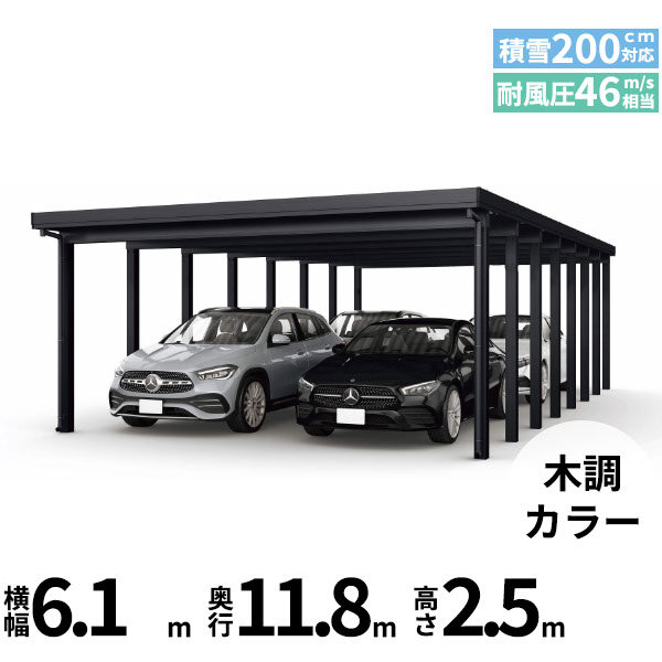 【商品のみ】カーポート 4台用 YKK YKKAP ジーポート Pro 6000タイプ 横材なし 明かり取りなし 奥行(2)連結柱16本 J60・60-60 H25(凍上柱) 木調色