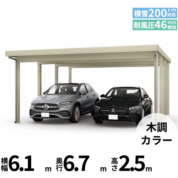 【商品のみ】カーポート 2台用 YKK YKKAP ジーポート Pro 6000タイプ 横材なし 明かり取りなし 間口延長柱8本(梁4列) E55-60・18 H25(凍上柱) 木調色
