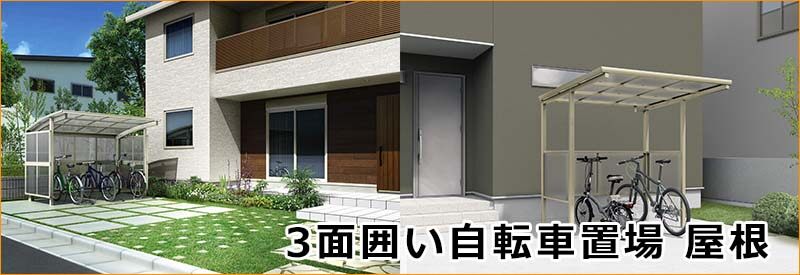 横からの雨の吹き込みや風から自転車を守る3面囲いタイプ