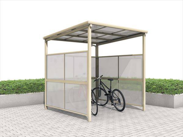 三協アルミ ベルフラット パネル2段 コ型(パネル3面) 端部柱タイプ ポリカーボネート板 間口22 KLBS-E2221C-WK 『サイクルポート 自転車置場 屋根』
