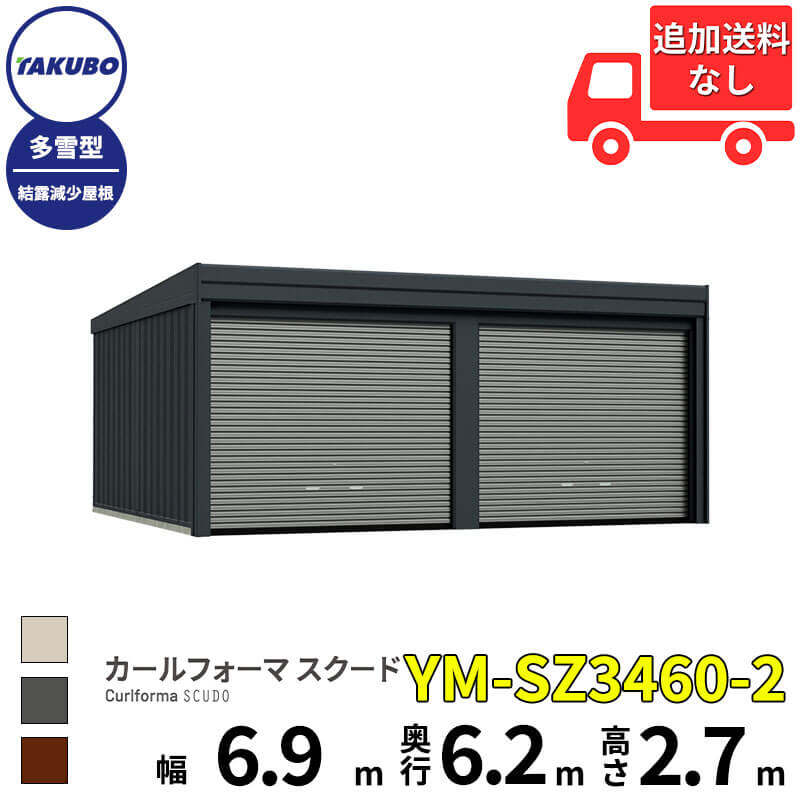 洗浄機プレゼント中! タクボ物置 ガレージ カールフォーマ スクード YM-SZ3460-2 多雪型 結露減少屋根 巻上げシャッター扉 2台用