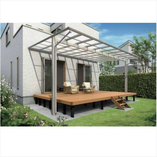 『全国配送』 YKK エフルージュ FIRST 大型テラス 壁付けタイプ 60×39 熱線遮断ポリカーボネート屋根 高さ2800mm JTC-K3960LV- 木調色 後付け 木調色