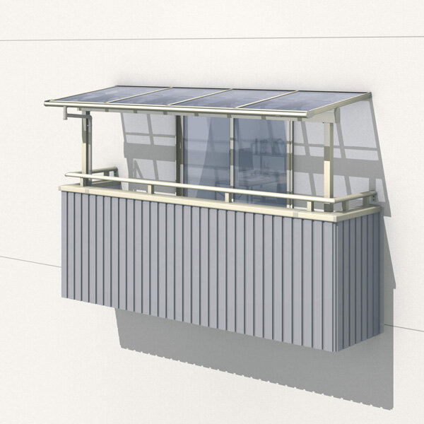 YKK 躯体式バルコニー屋根 ソラリア Bタイプ 柱奥行移動タイプ 1間×4尺 フラット型 下止め施工 熱線遮断ポリカ屋根 関東間 600N/m2 中間取付金具セット付 後付け