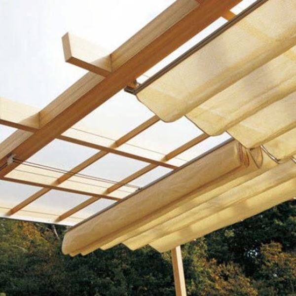 タカショー ポーチテラス オプションアイテム ロープ式開閉シェード 1.5間×8尺 サンドストーン