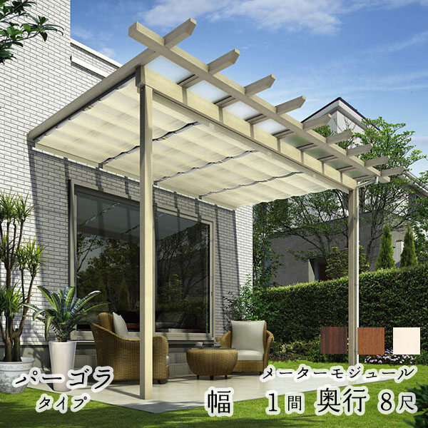 YKK YKKAP サザンテラス パーゴラタイプ+天井カーテン+操作フック棒セット メーターモジュール 600N/m2 1間×8尺 熱線遮断ポリカ 後付け『 テラス屋根 サンシェードカーテン付き 』