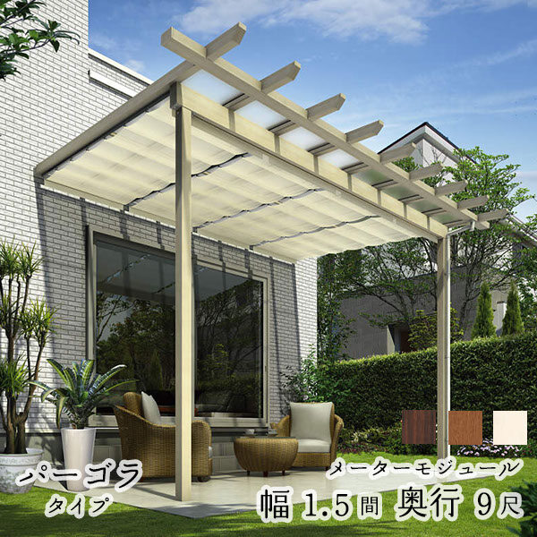 YKK YKKAP サザンテラス パーゴラタイプ+天井カーテン+操作フック棒セット メーターモジュール 600N/m2 1.5間×9尺 熱線遮断ポリカ 後付け『 テラス屋根 サンシェードカーテン付き 』