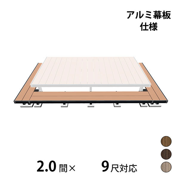 三協アルミ ヴィラウッド オプション 二段デッキ 間口+出幅(両側)対応 アルミ幕板仕様 束連結納まり 2.0間×9尺 プレミアムタイプ