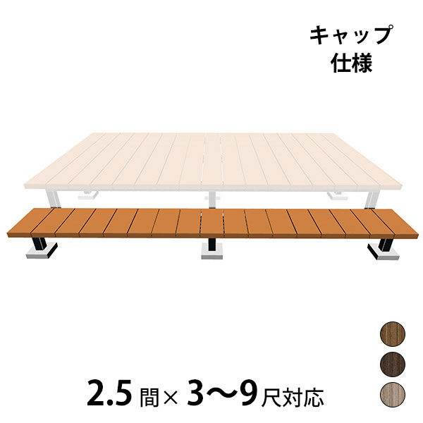 三協アルミ ヴィラウッド オプション 二段デッキ 間口+出幅(片側)対応 キャップ仕様 束連結納まり 2.5間×4尺 スタンダードタイプ