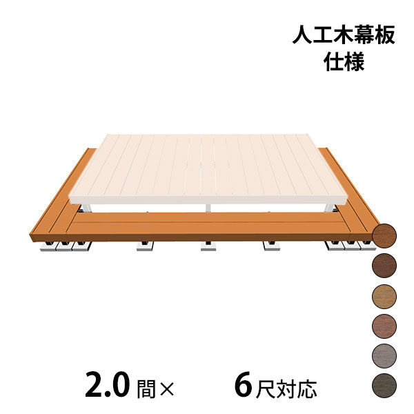 三協アルミ ヴィラウッド オプション 二段デッキ 間口+出幅(両側)対応 人工木幕板仕様 束連結納まり 2.0間×6尺 スタンダードタイプ