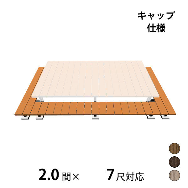 三協アルミ ヴィラウッド オプション 二段デッキ 間口+出幅(両側)対応 キャップ仕様 束連結納まり 2.0間×7尺 プレミアムタイプ