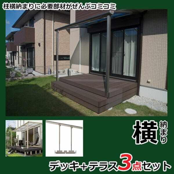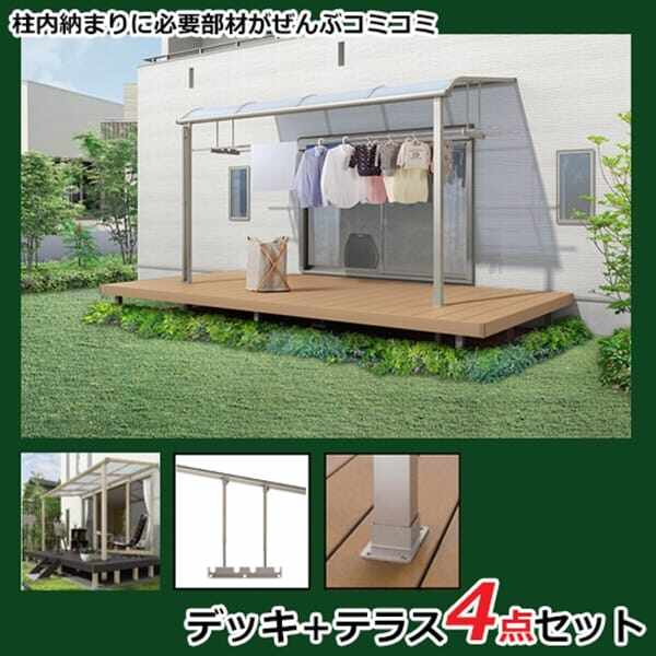 リクシル 樹ら楽ステージ + スピーネ デッキ+テラスセット 柱内側納まり 1.5間×7尺 テラス:自在桁仕様 F屋根 ポリカーボネート